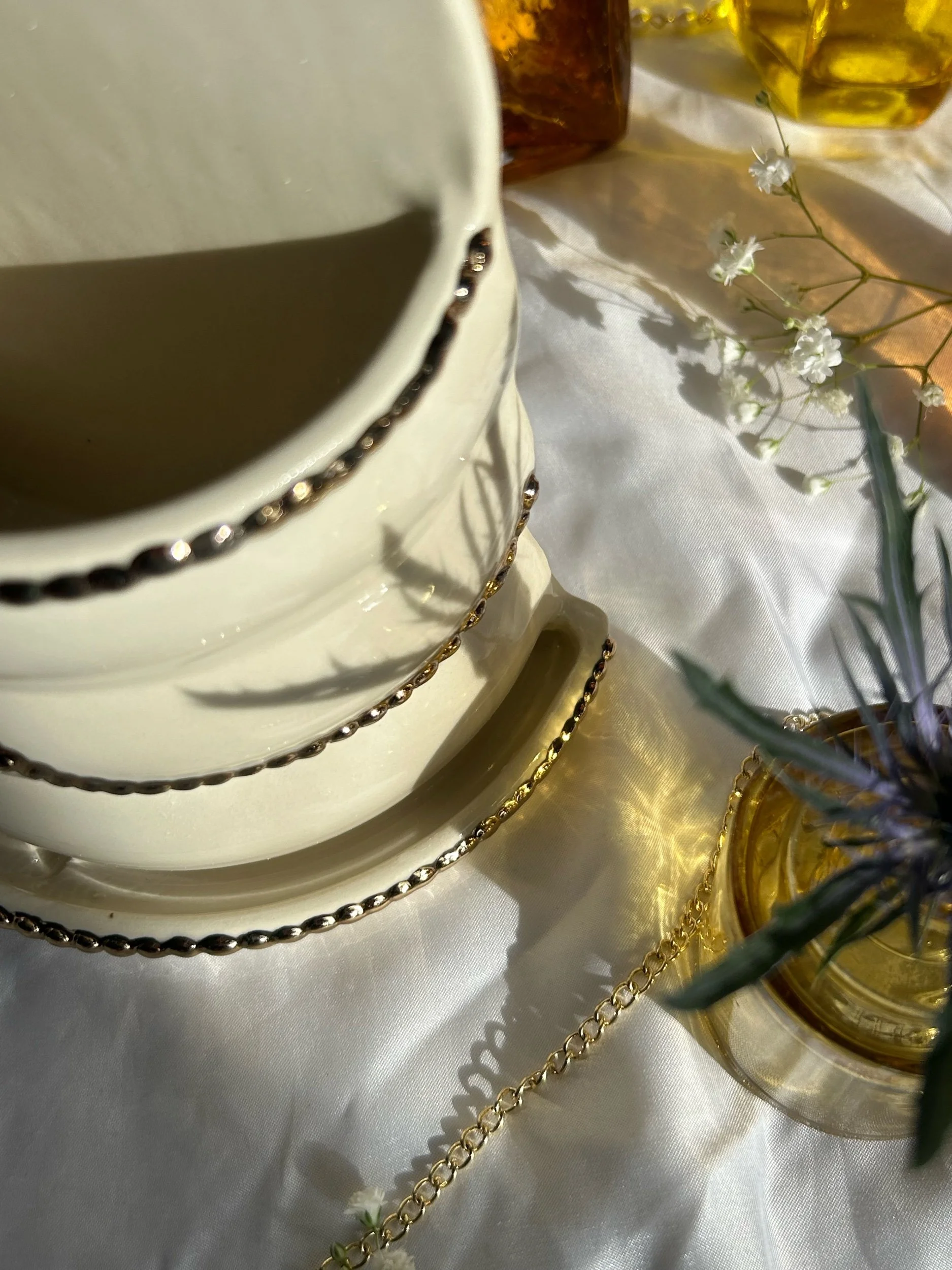The gold luster is real gold and all of the frame elements are sculpted completely by hand.