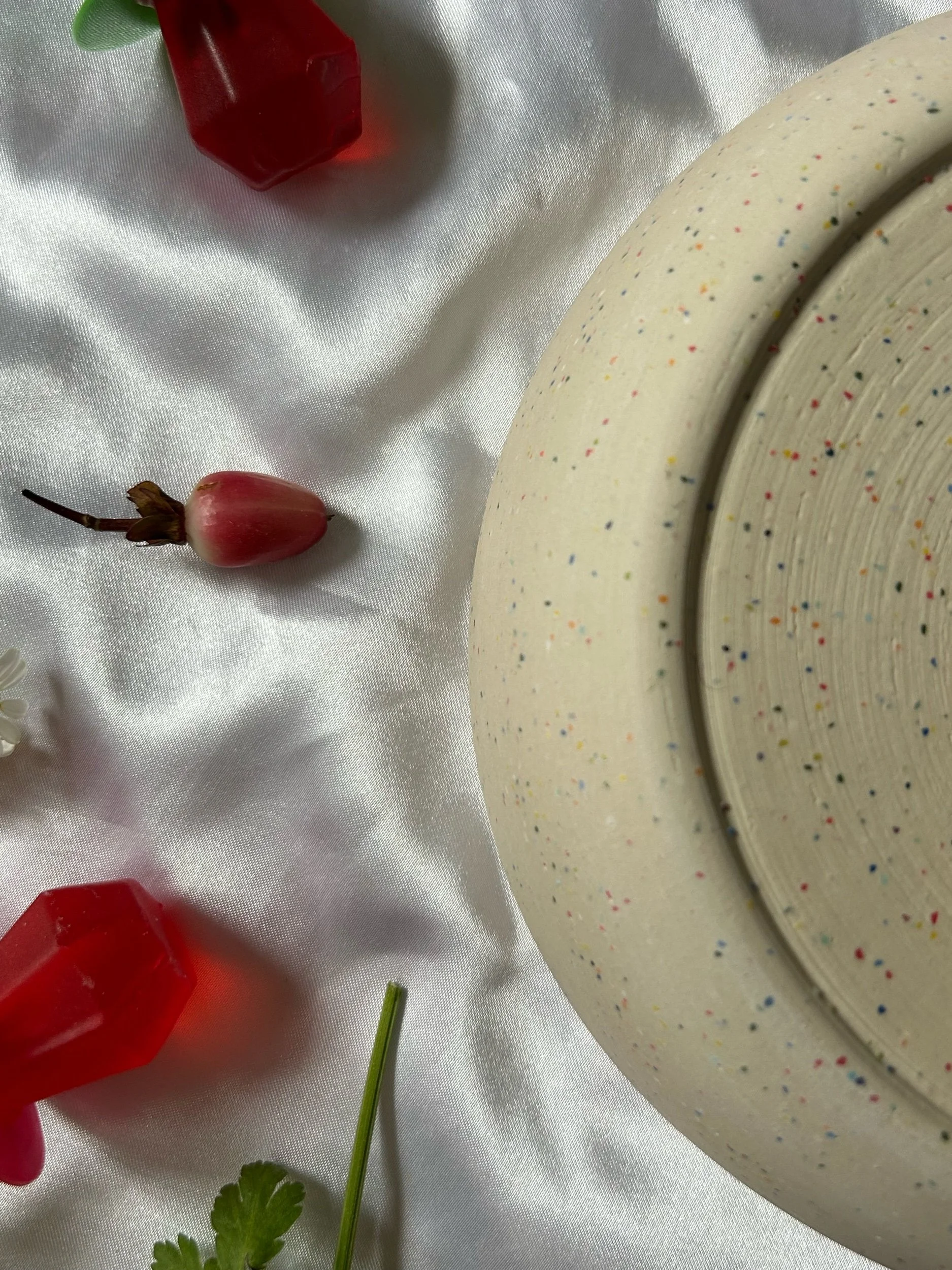 *unfortunately while sanding the rim of this blate my sock got wet and completely threw me off (the sensory girlies understand) and I scratched the inside surface of the glaze. The scratch is quite thin, but is still reflected in the price.