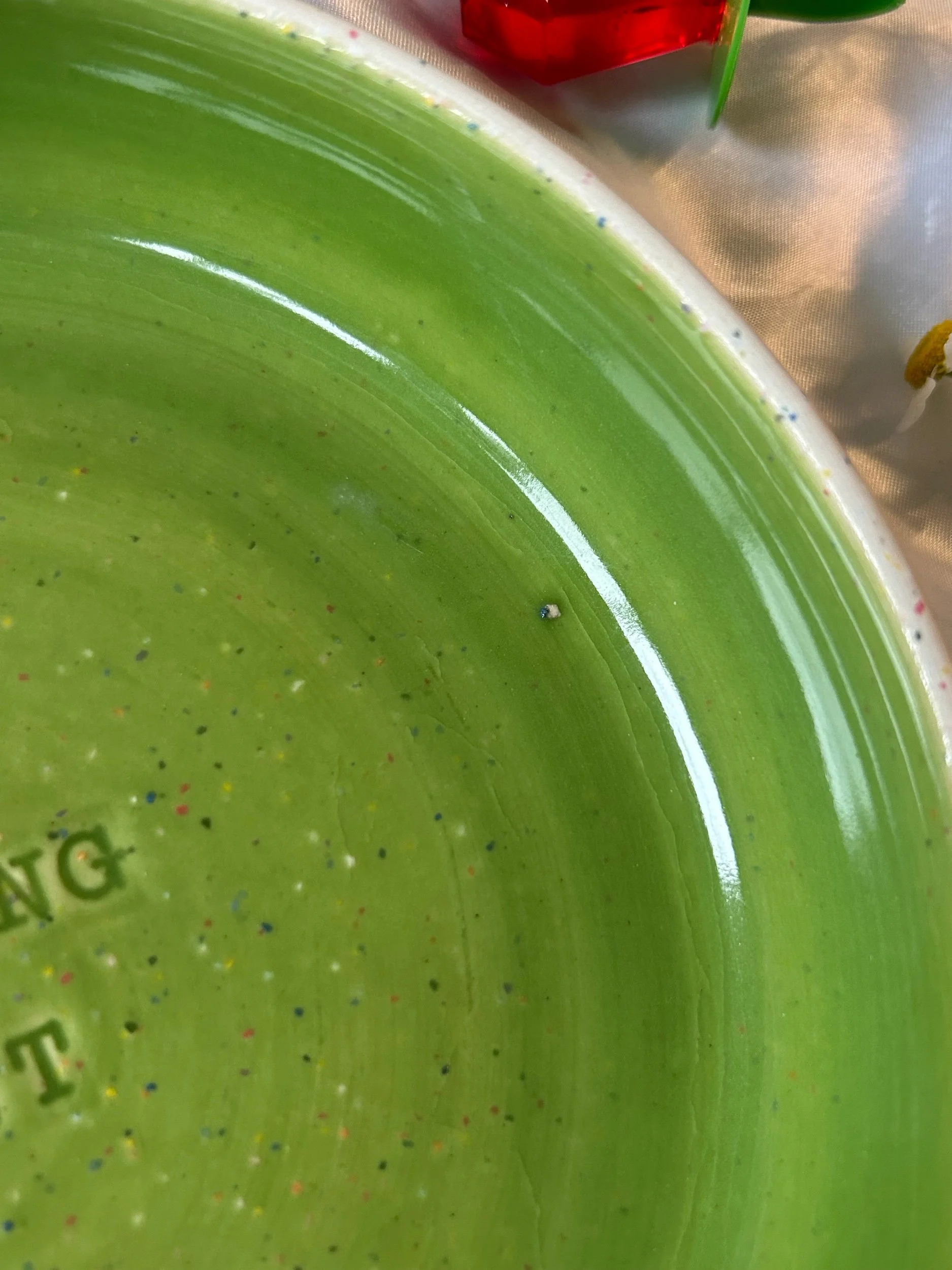 **There is a small bit of clay that was fused to the smaller blate during the glaze firing. This doesn’t impact the food safety of the piece, but is a cosmetic blemish that is reflected in the price.